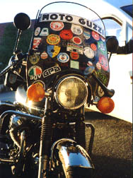 Anyway, today there is good weather, pretty puffy clouds - a nice day to ride. Early afternoon we reach the Swiss-French border. It's a very small check point. Swiss guards say, "Forward!" but the two French cops stop us. One of them said, "Documents, please!" Then we go to the office where we write our identity dates. We're told to please empty all jackets and pants pockets. Finally, at end the question: "Do you have knives, hashish, marijuana?" We laugh at this foolish question. We are not a motorcycle gang! We are just four Guzzi riders on tour to take part in a bikers party. This was not enough, "Please open bike bags. Do you have weapons? Knives or drugs?" Enough (already) we said, "NO!" Now they look in our tents, sleeping bags, clothes, rain gear, and when I opened my left saddlebag the cop said with amazement. "It's a bazaar!" Inside there was motor oil, brake fluid, WD40, and lots of mechanical parts, etc. Finally they surrender, and we can enter France. Sorry. You are welcome to continue.