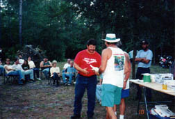 Moto America, Angier, North Carolina; Moto International, Seattle, Washington; Slick's, Glenwood, Colorado; Eish Enterprises, Salineville, Ohio; K&N Filters, Riverside, California; Dennis Kirk, Rush City, Minnesota; Sargent Cycle Seats, Jacksonville, Florida; Precision Imprint, Athens, Ohio; Harper's Moto Guzzi, Greenwood, Missouri, Ron's Kawasaki, Panama City, Florida; Power Sports Guzzi, Naples, Florida; Competition Chemicals, Iowa Falls, Iowa; Lightning Moto Sport, Port St. Lucie, Florida; The Sport Center (Yamaha), Panama City, Florida; American Canoe Adventures, White Springs, Florida, Iron Horse, Tampa, Florida; Action Cycle, Ft. Lauderdale, Florida; SunBeeMer's, Venice, Florida; Stan's BMW/Moto Guzzi, Gainesville, Florida; Protest All, Anaheim, California; Rotten Ralph's Biker Bar, N. Highway 231, Panama City, Florida; Frank Wedge/MGNOC, Larned, Kansas; Jackson Cycle Triumph/Moto Guzzi, Clearwater, Florida and lastly the folks from Amsoil (Roy Goyette), Naples, Florida. Roy not only supplied eight door prizes, they produced the road signs that guided strangers to our rally. The signs were impressive and we recovered most of them to use next year.