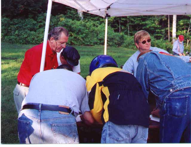 Friday was the official first day of the rally with people coming in and signing up at the registration desk. There was the sign-in desk tent with a number of 2002 Moto Guzzi motorcycles along side of it. Moto Guzzi North America was behind them ... looked like demo rides. After I registered for the rally I went over to the Sport Cycles tent. The Moto Guzzi dealer from Avon, New York, had set up a regular shop minus the bikes. Parts and repairs could be purchased. I saw a number of bikes getting repairs and work done. This was handy if your bike needed some last minute work.