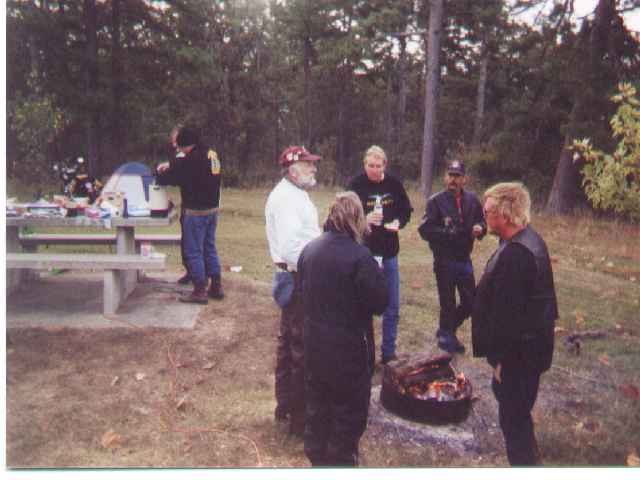 Back at the campground, someone had mixed up an alcoholic concoction in a plastic gallon milk jug and was passing it around. After my third cup of the stuff, I decided I'd better quit because I wanted to be able to set up my tent and to remember what the campout was all about. It was pretty good though. I think that some of the guys may have had a long, looong ride back home the next day.