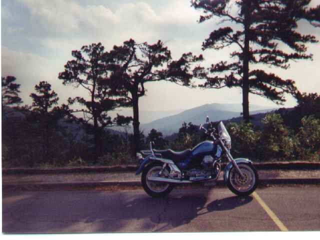 The small town of Talihina, located about six miles west of the State Park was crowded with motorcycles and their riders, or at least it was crowded for a small town. Most of these were Harley riders, but I did see a few Guzzis and lots of Goldwings. I didn't stop, but continued on to the campground. I knew I would see the Guzzi guys later.