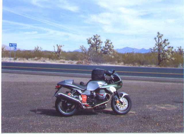 lettering on the ignition switch it was not necessary to push to turn the switch to the left and lock the steering. I had to endure a minister and his entourage coming up and asking me how fast I'd gone on my new Moto Guzzi so far. After a pause and a stare I told them an indicated 95 because the engine is breaking in and has a rev limit. Would I change or add anything? Of course. Being a pragmatist I desperately mourn the loss of the center stand on today's sport oriented motorcycles. Why can't I go fast, save weight, and be able to easily work on my bike? Even though the lights seem bright enough and work well, I'd like to have a 520 W alternator instead of the 350 W one I've got. I know Ducati makes one because that's what my wife's bike has. I usually let her lead at night so she doesn't blind me with her `lighthouse' headlight that's as bright as our pickup trucks.