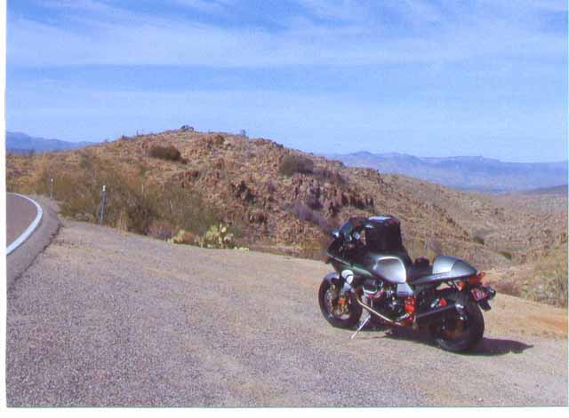 My first riding impressions of the Tenni were formed on the roads around Prescott, Arizona, an area with tight curves aplenty. In fact, we headed out to Skull Valley, then back to Prescott on US 89 after dark. After that ride I felt like Marco Melandri in the 250 World Championship Road Racing winner's circle! In fact, I think I could've just taken a nap and let the bike ride itself through all those 20-mph curves. Really though, the Tenni is a 550-lb bike that feels and handles like a 450-lb bike. The steering is so quick and precise, the front end is so planted, and overall the bike is so stable that it's very confidence inspiring. When I was running a little too fast in a slow curve, I just leaned it over a little bit more and tightened up my line. On my '89 Le Mans in that situation I would've been hanging off and/or hitting the brakes. To date my road speed is still limited by an engine break in rev limit, but I have not experienced instability up to 100 mph. From what I hear, others have not up to the top speed of 140 mph.