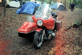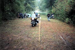 That night it rained on and off all night. Sunday morning was nice enough to cook breakfast, and we started to break our camp, but it started to rain like cats and dogs at 9:00 A.M. We were right in the middle of taking down our camp, so everything got packed away wet. Getting our bikes out of the low area was quite tricky, but we managed to get on the road around 10:00 A.M. After about twenty miles, I had to pull over because we lost three riders in the rain. I traced back and found out that one of the Goldwing's had quit. The engine ran but seemed like the drive system would not go, good thing we brought the trailer.