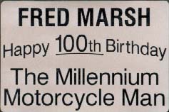 For many of us, May 12, 2000 was an ordinary day. But for Fred Marsh, motorcycle legend, charter AMA lifetime member, and Moto Guzzi dealer of 53 years, this day marked a milestone - his 100th birthday.