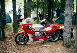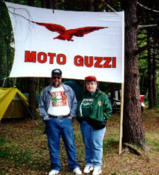 At first we walked around and took pictures of the bikes. Norwegians Guzzi people are just like Guzzi owners in the US in that many of their bikes had custom touches and modifications done to make them fit the personal needs of their owners. I was surprised to find many complete touring setups like so many of us ride here in the states. I guess I expected to see a larger percentage of sports bikes, but this was not the case. I was a little hesitant to try and strike up a conversation with the folks as my Norwegian is nonexistent, but I didn't need to worry. My not-so-shy wife, who spotted a nice California III set up, walked up to a group around the camp fire and asked who owned the bike. As luck would have it, the owner spoke English. In fact, it seems that darn near everyone spoke English. From that point on it was rally time! We spent the rest of our too short visit exchanging information about riding equipment, modifications and all things Guzzi. From our point of view it sure felt like home. Guzzi people are truly a great bunch in Norway, just as they are in the US.