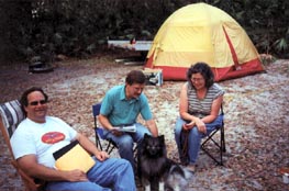 Lake Monroe Park is on the north shore of Lake Monroe, and is a well maintained but little known, it seems, camping spot. All the sites are large, and all have electricity and water. The campsites Tip scouted out for the Guzzi folk were in the back of the park, so we had very little traffic. A canopy of live oaks shaded us, and scrub palmetto plants between the campsites gave a measure of privacy. The park's gates were locked at dusk, but the campers got the key, so there was none of the late-night cruising for campsites that made the mini Oakie dustbowl at Bulow. Joe Ortiz, our wonderful park supervisor, gave us a deal on some firewood, and warned us about the gators in the lake.