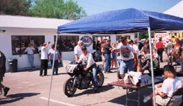 We hooked up with Louisiana's Guzzi Dave, fresh from Mardi Gras, and his entourage, who were camping at the track. They had ridden over, but were followed by two motor homes for creature comforts.