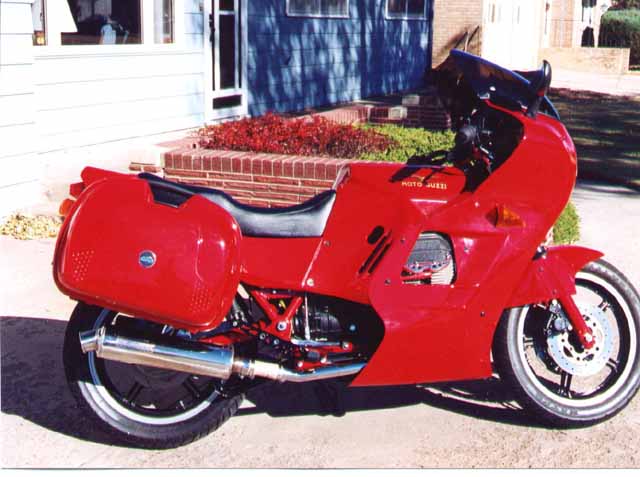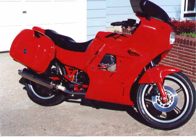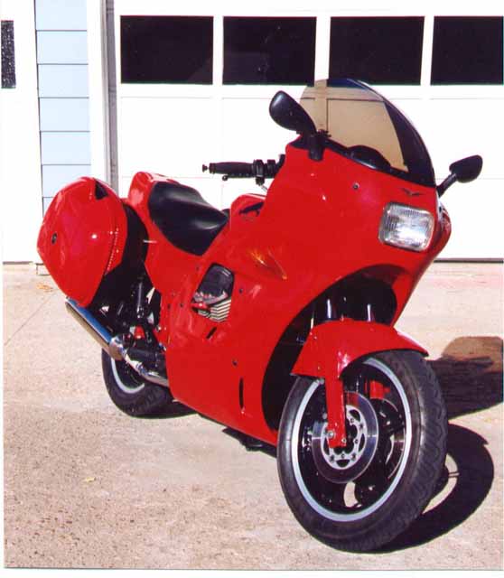 Now the plot starts to thicken. I had been admiring how Frank had transformed his V11 LeMans into a sport tourer and I was trying to come up with something for the LeMans IV to give me more wind protection and bring my feet further forward and down a little. I already had the swan bars to bring my hands back. I looked at several fairings and windshields, but nothing seemed to compliment the rest of the bike. At one point I called Curtis at Harper's Moto Guzzi and asked him if he knew of anything that might work. He said they had a Valtek body kit that would mount right on the IV. It was just like the one on the 1000 SP III they have on the showroom floor. I found a picture of it on their website and decided that this is just what I was looking for. Curtis made me a nice deal on the kit and I went up a couple of weeks later and picked it up.