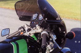 For aesthetics more than anything, a Sprint half fairing was added which looks great but directs all of the wind blast right into my face shield so it's like riding into the teeth of a hurricane. Until the windscreen is replaced, ear plugs are mandatory on this one. It could also stand some stripes down the side of it to match the gas tank.