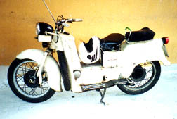 When we got ready to depart, I pulled out a copy of the Guzzi News that I had carried along, and I showed it to the proprietor. I stuttered through some pidgin Italian, trying to tell him I was from America, and had come to Mecca to visit the Guzzi factory. He didn't act very interested in what I was showing him, and I felt a little disappointed. He motioned for me to wait, as he disappeared into the back room. In a moment he returned and handed me a gift. It was a medallion from 1981, on the occasion of Moto Guzzi's 60th anniversary. It had been issued as a commemoration medal at a rally held then. On its back side a tiny map shows Lago di Como and the date of the rally. The face of the medallion shows the proud Guzzi eagle, and the inscription, in Italian: "Da 60 anni un fatto italiano che il mondo invidia." My best translation attempt: "For 60 years an Italian creation that the world envies."