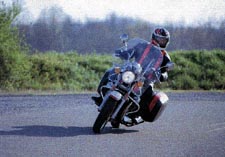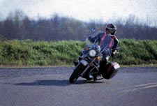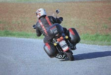 There are two schools and techniques to get the bike to lean. One is to counter steer as you were taught in the MSF class, or you could body steer. To counter steer is probably the quickest and most precise method of initiating and controlling lean. It is called counter steering because you point the front wheel in the opposite direction you want to go to get the motorcycle to lean in the direction you want it to go. Since a motorcycle is a single track vehicle, you must lean it to turn it . In other words, press the right handle bar grip to right and the left handle bar grip to go left. The other technique is to body steer. If you are going to try this method the correct way is to press with the foot on the peg of the direction of the turn while pulling with the knee on the other side. This technique was successfully used by Reg Pridmore and is currently being demonstrated by his son Jason. A word of caution with this technique is that the rider has a tendency to pull/push the bike down while keeping the body upright or actually leaning out. This can cause excessive lean angles. Be sure to make a conscious effort to lean with the bike when using this technique. Oddly enough, both techniques cause the front wheel to point in the direction opposite of the lean. In one case you counter steer with the handle bar; in the other you use your lower body strength to counter steer. You choose.