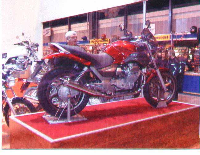 Well, I've just returned home to the U.S. from my trip to England and already I'm missing the fun I had and the friends I made, while there! I was in Birmingham from November 14 to the 18, 2002 at the National Exhibition Center for the International Motorcycle and Scooter Show, where I happened to have the good fortune of working along with other Moto Guzzi Club GB members on their club stand. What a great bunch of people they are and I mean that sincerely! I had a lot of fun working the stand and enjoyed the camaraderie of visitors and friends of the club. We signed up many new members and answered questions from people who were just passing by. Many of them didn't know what a Moto Guzzi was, but seemed interested, just the same. We also had quite a bit of fun in the evenings after the show at the cottage, the club rented for the people working the show. There we ate, drank, and told a lot of stories about past motorcycle trips and rallies. I've got to say, the Moto Guzzi Club GB is a very well organized club with enthusiastic Club Officers. And my hat goes off to Mike Lacey for the excellent job he did organizing the NEC Show and lodging!