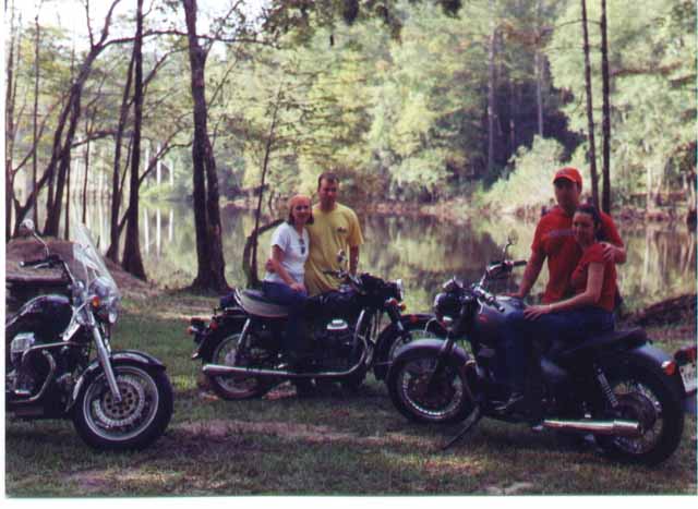 There was no central fire pit this year, but a lot of campers had their own fires going to keep the bugs away. The local Lions Club from nearby Wewahitdlka, Florida, came and joined our rally. On Saturday morning they prepared a great southern breakfast of home made biscuits and sausage gravy with coffee and juice. They were selling tickets for a raffle of an old Indian motorcycle to be raffled at Daytona during Bike Week 2003.