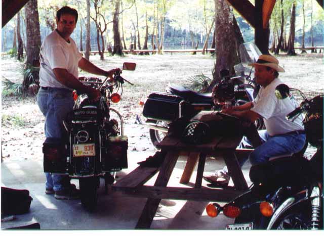 We had two dealers in camp this year. The Euro Cycles people from Tarpen Springs set up but did not bring any bikes. Stan Friduss from Gainesville brought two Guzzis and some Italian scooters. Once again Stan sold two Guzzis and almost sold a scooter. Thanks Stan for the EV, "I like It".