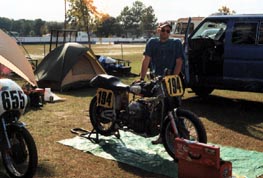 In 2000 1 again ran a bunch of races including Deland, Daytona, Gratten, Mid-Ohio, Putnam Park, Talledaga and Roebling Road. The maintenance program was the same as 1999, super reliable! However 2000 was a difficult year in other ways. The day before Mid-Ohio Jefro was diagnosed with heart disease and had to be scheduled quickly for by-pass surgery. I still don't quite understand as Jeff rides mountain bikes at least ten miles a day, is 50 year old, weighs about 150 pounds and cholesterol readings of 180. This threw us all a curve and detuned us quite a bit. Jeff had his bike loaded in the van and was ready when the doctors put his brakes on. We missed Mid-Ohio practice because of the ordeal but were able to race on Sunday of the Vintage Days weekend.