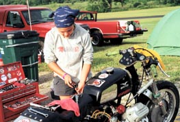 In 1999 1 was fortunate enough to run a number of AHRMA Nationals which included races at Deland, Daytona, Gratten, Mid-Ohio, Gingerman, Park City Utah, and Talledaga. A lot was learned and I ended the year ranked 13th in the Sportsman class. I ran a total of sixteen races and four full practice days without so much of a hiccup from the old Guz! The only maintenance I performed for the whole season was an oil change for every race weekend, valve adjustments, fresh plugs, battery exchanges and two sets of tires! Didn't even touch the points or timing - it just ran sweet consistently.