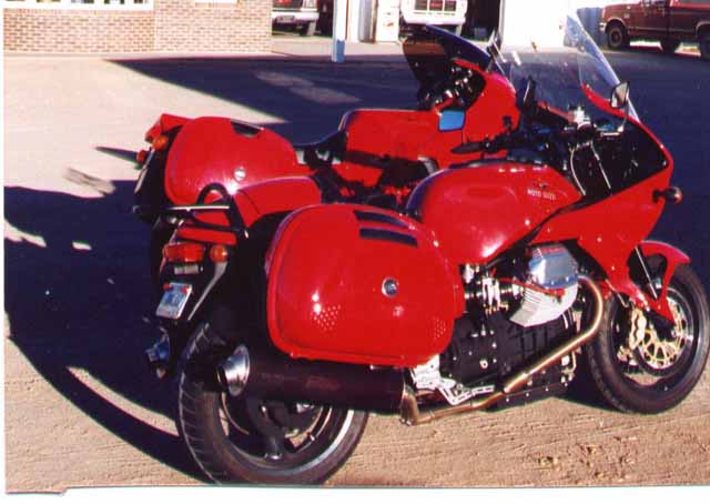 I ordered these bags from Harper's Moto Guzzi in Greenwood, Missouri. Curtis Harper informed me Givi was out of the 40 liter units, but could obtain a pair of the 46 liter units in red. (Dave already got his 40 liter Givi bags from Curtis.) Why not, bigger might be better? Besides, I didn't want to wait upwards of eight weeks for the backorder on the 40 liter jobs.