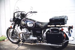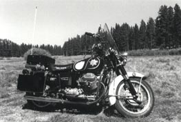Wanting to be as correct as possible in the restoration, I needed to find out exactly how the CHP Moto Guzzis were outfitted in the early 70s. I visited John Hoppe at CHP's Motor Transport Section. John was the "old timer" at the CHP and remembered the Guzzis. He explained that in the early 70s, the CHP purchased Honda 750s, Moto Guzzi Eldorados and Kawasakis in their quest to find a replacement for the venerable Harley. They finally opted for the Kawasaki. (Go figured, but CHP Guzzis logged many miles on California highways.) John even had some old black and white photos of the Guzzis. He photocopied the pictures for me. with those authentic photos and I now knew how my restoration was should eventually look.